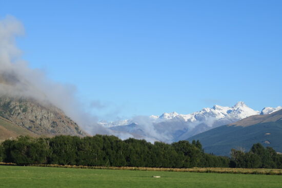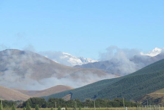 Mit Einfahrt in den Nationalpark ändert sich die Landschaft: in Augenhöhe fahren wir an Regenwald vorbei, über uns durch die Deckenfenster sehen hohe Berge, Gletscher mit Schnee und Eis bedeckt. Das Schmelzwasser sucht sich seinen Weg, mal stärker, mal schwächer rauscht es durch die Enge der Gebirgstäler, glasklar, rein und frisch. Wir halten an, um unsere Wasserflaschen aufzufüllen. Nächster Stopp ist an den Mirror Lakes, die, wie der Name bereits verspricht, die Berge im Hintergrund bei klarem und stillem Wasser spiegelt. Ein tolles Naturerlebnis. Und immer wieder sehen wir die weißen Wolken, tiefhängend wie Zuckerwatte zwischen den Bergen verteilt. Das ist das Bild, das Neuseeland seinen Namen verdankt: Land der langen weißen Wolke.