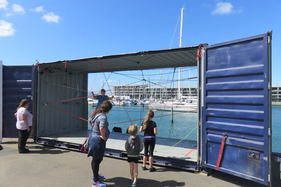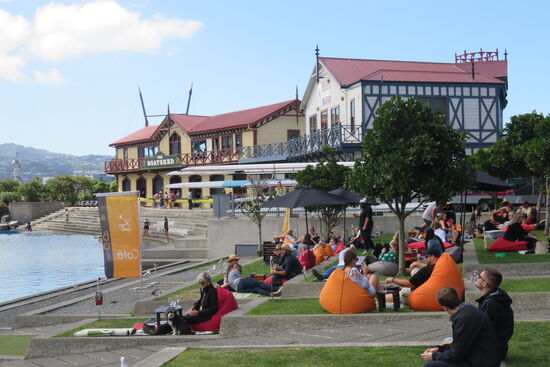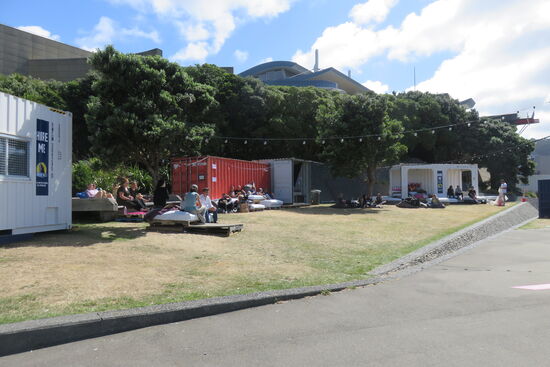 Heute ist Wellington nicht allein das politische Zentrum des Landes, sondern die Stadt ist auch bekannt für seine kreativen und aktiven Menschen. Sehr prominent steht auf der Uferpromenade beschrieben, dass in Wellington diese Attribute voll ausgelebt werden. Ein wenig bekommen wir von der kreativen Atmosphäre mit. Ein internationales Artfestival findet mit freiem Eintritt an der Waterkant statt. Junge Künstler nutzen Container für Vorführungen, Ausstellungen und Live Konzerte. In einem Container sind Seile kreuz und quer gespannt, auf denen Kinder klettern, während die Eltern in Sichtweite sich der Musik und ihren Drinks widmen.