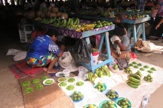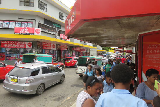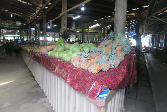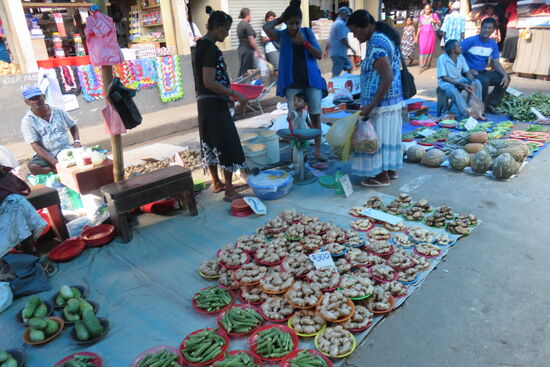 Nadi gehört zu den größeren Orten des Landes. Aber schon das Ermitteln des Zentrums erweist sich als schwierig. Ein Gewirr von engen Straßen und Gassen, die zum großen Teil als Verkaufsfläche für Gemüse und Obst dienen, kleinen Shops und Imbissstuben, dazwischen viele Menschen erwartet uns, als wir in Richtung town centre einbiegen. Und augenblicklich stehen wir im Stau, von Verkehrsregeln keine Spur. Siegmund erhält einen Schnellkurs aus meinen Beijinger Fahrzeiten: nur auf den Vordermann achten und fahren, wenn Platz ist! Wir können das Auto kostengünstig auf einem Parkplatz abstellen und erkunden das bunte Treiben zu Fuß. Wir sind offensichtlich die einzigen „Weißen“. Wir sehen uns auf dem Bauernmarkt im Zentrum der Stadt um. Er bietet ein reichhaltiges Angebot an allen Waren des täglichen Bedarfs, auch in den Supermärkten sind die Regale voll. Insgesamt scheint uns, wird die Bevölkerung gut versorgt. Auch wenn es für uns ein wenig unübersichtlich und zuweilen ärmlich aussieht, die Menschen machen einen zufriedenen Eindruck und, wie bereits schon mehrfach betont, sehr fröhlichen Eindruck. Und die jungen Leute geben sich wie überall auf der Welt. Im Restaurant sitzen neben uns junge Männer und Frauen, sie sind modern gekleidet, gut frisiert, spielen mit ihren Handys und unterhalten sich beim Bier lautstark. Anders könnte es nicht bei uns zugehen.