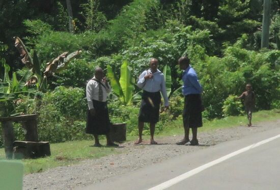 Beijing habe sie damals bewusst verlassen, um in ihre Heimat zurückzukehren. Und wir spüren in ihren Erzählungen immer wieder den Stolz auf ihr Fidschi. Sie erzählt von dem Land, das ihrer Familie seit Jahrhunderten gehört, auf dem sie sich ein neues Zuhause hat bauen lassen und wo sie in der Großfamilie und Dorfgemeinschaft das Zusammenleben ihrer Vorfahren lebt. Wir werden an die Erzählungen der Maoris in Neuseeland erinnert. Losa erklärt, dass auf Fidschi, das Land während der Kolonialherrschaft den Einheimischen nicht weggenommen wurde, die Fidschianer auch nicht zum Arbeiten gezwungen wurden. Das erklärt, warum so viele Arbeitskräfte aus Indien geholt wurden, und es erklärt auch, wo die Spannungen heute noch zwischen Indern und Einheimischen herrühren. Denn während die Inder arbeiteten, Geld verdienen, möglicherweise im Ausland auch Wissen und akademische Grade errangen, ist der Landbesitz weiterhin in einheimischer Hand. Und Land gehört einem, das wird nicht verkauft. Auch das erinnert an die Maoris in Neuseeland. Mit Stolz zeigt sie uns ihren Sulu, einen gerade geschnittenen Stoffrock, den sowohl die Frauen als auch die Männer tragen. Die Frauen bevorzugen bunte Stoffe, wadenlang. Bei den Männern sind es bedeckte Stoffe und kniebedeckt. Zuweilen sieht es schon lustig aus, wenn junge Männer mit weißen Hemden und Krawatten einen dunklen Rock dazu tragen. Ursprünglich waren es weiße Röcke mit gezacktem Rocksaum. Vor dem Regierungssitz haben wir einen Mann im dem traditionellen Rock gesehen. Losa erzählt uns, wie junge Mädchen, wenn sie abends ins Dorf zurückkehren, sich schnell die Sulu über die Jeans ziehen, um standesgemäß angezogen zu sein. Und die Blumen über dem Ohr gehören ebenso zur Bekleidung bei Frau und Mann.