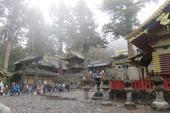 Mit Sonnenschein hat uns Nikko zwar nicht begrüßt, als wir gemeinsam mit Madoka und Flori am Samstagmorgen auf dem Bahnhof in Nikko ankommen. Es nieselt und die Berge ringsherum können wir im dichten Nebel und tiefhängenden Wolken nur erahnen. Hinter uns liegen gut 2 Stunden Fahrt mit U-und Schnellbahn, alles sehr bequem und fahrgastfreundlich. Nikko ist eine Stadt nördlich von Tokyo in den Bergen gelegen und für Einheimische und Touristen sehr beliebt, vor allem aufgrund der zahlreichen Schreine und Tempel aus der Edo-Zeit, der letzten Periode, in der die Shogune (japanische Militärmachthaber) die Geschicke des Landes bestimmten. Wir leihen uns ein Auto aus und beginnen mit unserer Tour.