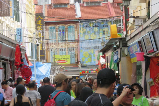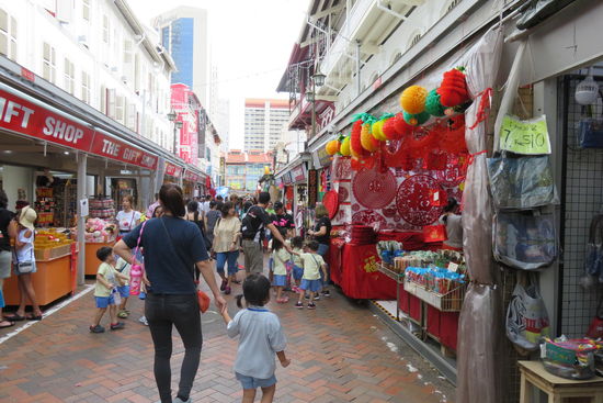 Übrigens heißt Chinatown im Chinesischen hier nicht 唐人街, Tangrenjie, wie in allen anderen Städten in Übersee, sondern 牛车水, niucheshui, was frei übersetzt Wasserbüffelkarren heißt. Als die Chinesen im 19. Jahrhundert in die Stadt einwanderten, war lag Chinatown am Wasser. Büffelwagen brachten die Wasserbottiche in die Stadt, daher der Name. Heute liegt zwischen der Marina Bay und Chinatown der gesamte Businessdistrict.