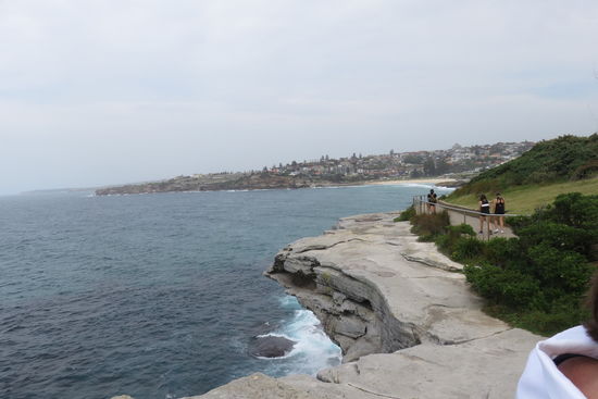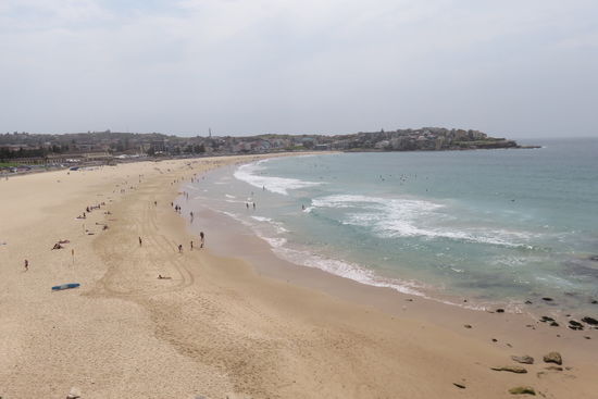 Zum Anbaden mussten wir ein wenig weiter fahren. Wir entscheiden uns für den Bondi Beach im Süden der Stadt. Gute 7 Kilometer von der Stadt entfernt, Busse fahren im Minutentakt direkt zum Strand. Wir sehen auf der Karte herrliche Wanderwege an der Küste weiter südwärts ausgewiesen. Auch das Wetter ist nicht ganz so heiß, wie an den Tagen zuvor. Aber dann bleiben wir auf den Klippen zwischen Bondi und Tamarama Beach sitzen und genießen den Blick auf das Meer vor uns, die Strände und die vielen Surfer, die hier boardrider genannt werden, wie sie auf die Wellen warten und auf ihren Spitzen zum Ufer zu gleiten. Bondi, Tamara und der sich anschließende im Süden beider Strände gelegene Bronte Beach gehören zu den bekanntesten Strände Sydneys und sie beherbergen die ältesten Surfclubs in Australien. Aber was heißt alt hier in Sydney?! 1842, vor noch nicht einmal 200 Jahren, soll diese Bay unberührt gewesen sein. Erst Anfang des 20. Jahrhunderts kamen die ersten Badenden. Aber dann ging es schnell, Tausende nutzten gerade am Wochenende die herrlich gelegene Bucht zum Ausruhen. Ganz ungefährlich ist das Baden wohl nicht, denn es wird auf verschiedenen Tafeln an den "Black Sunday" im Jahr 1938. Herrliches Wetter soll mehr als 35 Tausend Menschen zum Baden eingeladen. Drei große Wellen, die sich plötzlich auf offener See gebildet haben, bereiteten dem Spass ein jähes Ende. Glück im Unglück: 250 Menschen konnten gerettet werden, "nur" 5 verloren ihr Leben. Uns hat diese Information nicht abgeschreckt, auch wir waren im Wasser, das gar nicht so warm war, wie wir vermutet hatten. Aber die Wellen wurden immer stärker, gut für die Surfer, wir blieben dann doch mehr in der Nähe des Strandes.
