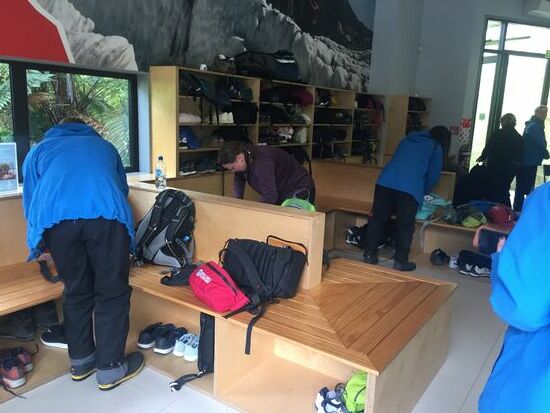 Die Tour wird abgebrochen. Jackpot. Wir dürfen alle in unserer Kluft wieder zurück zur Station gehen und uns wieder umziehen. Es werden nur noch alle Besucher vom Gletscher geholt. Das Wetter ist zu unbeständig, um noch weitere Touren durchzuführen. Es besteht die Gefahr, dass wir nicht mehr zurückgebracht werden können. Zusätzlich zu einem halben Tag Zeit, die wir hätten besser nutzen können, haben wir noch eine ordentliche Menge an guter Laune und 2$ für das Schließfach verbraten. Netterweise bekommen wir wenigstens für die Hot Pools Rabatt auf den Eintritt. Wir zahlen statt 28$ nur 21$. Das war ein top Angebot, online hätten wir 19$ bezahlt. Ich würde die Hot Pools, die im Internet hoch gelobt werden, so beschreiben: drei Planschbecken mit drei unterschiedlichen Temperaturen (36, 38 und 40 Grad) und drumherum 5 bis 6 Bänke zum nicht gemütlich sitzen. Keine Liegen und, abgesehen von den Duschen und Toiletten, keine weiteren Räume. Wir sitzen etwa eine Stunde in den Pools und lassen unsere Haut schrumpelig werden, dann gehen wir zurück zu unserem Hostel. Die Laune ist am Tiefpunkt.