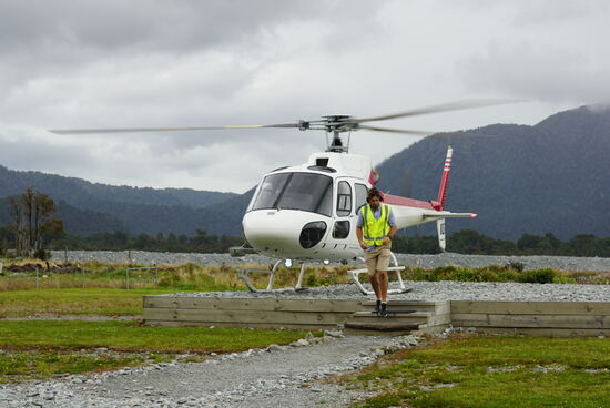 Anschließend müssen wir noch 10 Minuten zum Heli-Landeplatz laufen. Zwischenzeitlich haben wir noch die Info bekommen, dass wir die letzte Gruppe sind, die heute noch starten darf. Nach uns sind alle Touren wegen des schlechten Wetters abgesagt worden. Haben wir Glück.