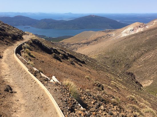 Nun beginnt der harte Abschnitt des Treks. Nach weiteren 2 Kilometern mit wenig Steigung starten wir den 10 km langen Abstieg, der uns über Serpentinen ins Tal und letztendlich zu unserem Auto führt. Die Strecke zieht sich und die Sonne gibt noch einmal alles. Wir beginnen sogar zu laufen, um eher unten anzukommen und ein wenig die Füße zu entlasten. Auf den letzten 5 Kilometern überholen wir so noch etwa 30 weitere Mitleidende.
