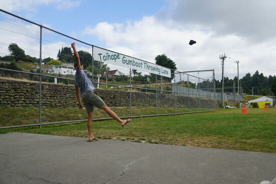Wir stoppen in Taihape für eine Gummistiefelweitwurf-Challenge. Nachdem das mit dem Surfen nicht so gut geklappt hat, habe ich jetzt wohl eine neue Sportart für mich entdeckt. Von den Mädels ist mein Wurf knapp der Weiteste. Bei den Männern gewinnt selbstverständlich „Chief Shaman“.