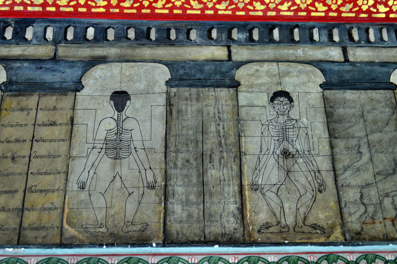 Nach dem Besuch trinken wir etwas, dann spazieren wir weiter zum Wat Pho, dem Tempel des liegenden Buddha. Auch dieser Tempel ist eine weitläufige Anlage mit mehreren Höfen und der berühmten Massageschule. Im eigentlichen Tempel treffen wir - ungefähr auf Höhe der Knie des liegenden Buddha - zufällig meinen Sohn, der auch gerade die Sehenswürdigkeiten der Stadt erkundet. Besonders gefällt uns der Hof mit den vielen kleineren Buddha-Statuen, hier ist es auch deutlich ruhiger.