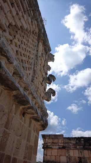 Im Anschluss an Uxmal und nach dem Mittagessen besuchten wir Kabah. Kabah ist eine kleine Stätte mit zwei Gebäuden, aber dennoch sehr sehenswert und auch hier kann man die Gebäude besteigen und erkunden.