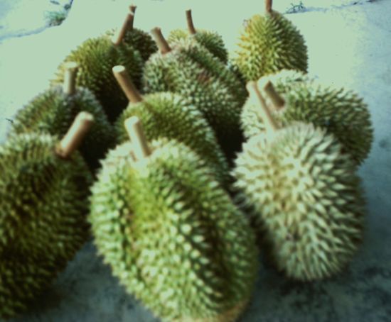 Der Besitzer zeigte stolz seine Durian-Bäume - er musste nur warten, bis die Früchte reif heruntrfielen und sie auflesen.