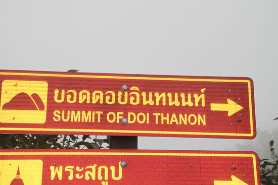 Anschließend fahren wir zum Top des mit 2565m höchsten Berges Thailands und laufen den kurzen Trail durch den Nebelwald. Leider sind die Wolken sehr dicht, so dass der Blick in die fantastische Umgebung getrübt ist.