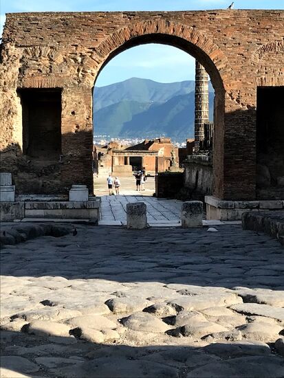 Wir fahren das kurze Stück über die Autobahn nach Messina, um die Fähre nach Villa San Giovani zu nehmen. Dann geht es durch Kalabrien , an Salerno vorbei nach Pompeji. Hier gibt es eine Führung durch einen kleinen Teil von Pompeji, der aber sehr beeindruckend ist. Dadurch, dass beim Vulkanausbruch im Jahre 79 n.Chr. Alles von Vulkanasche verschüttet wurde, ist alles sehr gut konserviert und man bekommt einen guten Eindruck über das Leben zu damaligen Zeiten.Wir sehen Thermen, Küchen, das Rathaus, ein Bordell mit den dazugehörigen Wegweisern zum selbigen, den Markt und viele Wohn- und Geschäftshäuser, alles sehr beeindruckend.