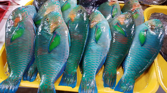Auch wenn Purto Princessa als Durchgangsstation nicht wirklich etwas zu bieten hat, ein wenig anschauen wollten wir uns Stadt und Umgebung dann doch. Also schnell einen Roller um die Ecke gemietet und zunächst raus aus der Stadt. Nicht weit entfernt liegt der Nagtabon Beach, ein chilliger Strand mit ein paar Strandbuden und viel Einsamkeit. Auf dem Weg zurück haben wir einen kurzen Stop auf Puerto Princessas Markt eingelegt. Sehr einfach aber auch sehr farbenprächtig. Als Taucher blutet einem da immer das Herz, wenn man das, was einem unter Wasser so viel Freude bereitet, plötzlich in Reih und Glied fein gekühlt auf dem Tisch eines Marktstandes liegt.