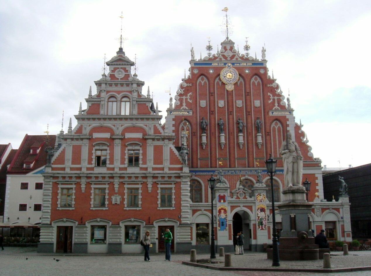 Am Rathausplatz steht die wohl beeindruckendsten Gebäude der Altstadt - die "Schwarzhäupterhäuser". Sie wurden 1334 von der Stadt gebaut und hauptsächlich von Angehörigen der Gilden genutzt, ab dem 15. Jahrhundert von der "Compagnie der schwarzen Häupter", einer mittelalterlichen Bruderschaft für ledige Kaufleute. 1713 ging das Haus in den Besitz der Bruderschaft über. Es ist im gotischen Stil errichtet mit schmuckvoller Fassade und prächtigem Renaissance-Ziergiebel. Eine astonomische Uhr zeigt Mondphasen, Tierkreiszeichen, Uhrzeit, Datum und Wochentag - ein Nachbau des "Calendarium perpetuum". Das Gebäude wurde im 2. Weltkrieg von deutschen Truppen zerstört, wurde 1993-1999 vor der 800-Jahrfeier der Stadt Riga originalgetreu wieder aufgebaut.