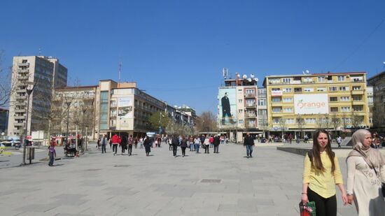 das anlässlich der Staatsgründung 2008 geschaffen wurde, durchstreifen die Fußgängerzone, die den Namen von Mutter Theresa trägt,