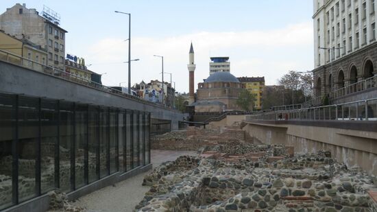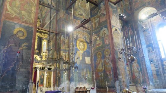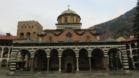 das wichtigste orthodoxe Kloster Bulgariens, natürlich unter UNESCO Schutz, bei unserer Ankunft die Kirche bereits geschlossen, aber ein freundlicher Mönch etwa im Rang eines Priors meint auf unsere Frage, ob wir auf dem riesigen Parkplatz übernachten dürfen: ‚No Problem‘. Damit Schlafplatz gesichert, Abendessen kann kommen – und früh am Morgen machen wir uns natürlich als erstes an die Besichtigung der Klosterkirche, die innen auf uns zwar einen netten, aber keineswegs überwältigenden Eindruck macht. Wir fahren noch 4km den Berg hoch, steigen weitere 100Hm zu Fuss auf und stehen dann vor dem Grab des Hl. Ivan, dem Gründer des Klosters. Alles wieder zurück und weiter nach Sofia, in die Hauptstadt des Landes. Ein Parkplatz ist schnell gefunden und dank eines freundliche Autofahrers, der uns einen Park-Kupon schenkt. 2Std = 2 Lv, entspricht etwa 1 Euro, er konnte uns leider nicht erklären, wo man so ein Ding kaufen kann und die hier übliche Alternative, eine SMS an den Abbuchungscomputer scheitert bei uns wie so oft an der fehlenden lokalen SIM Karte. Wir können uns so beruhigt an eine kleine Stadtbesichtigung machen, kommen dabei u.a. am Parlament