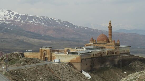 bis nach Dogubayazit. Dort, droben auf 2000m finden wir den von I-Overlander versprochenen SP mit Aussicht auf den Ishak Pasa Palace/Serail.