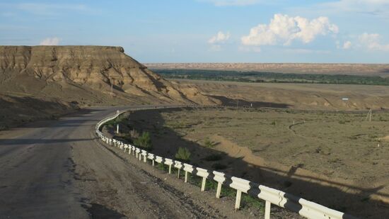 biegen dort auf eine Nebenstracke ab und fahren über Akzhar
