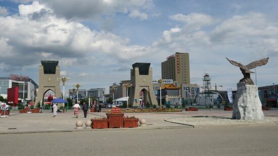 Khorgos, der Grenzort zu China, der Ort wo beide Staaten ein wirtschaftliches Kooperationsexperiment gestartet haben. Man kann von Kasachstan aus ohne Visa in den chinesischen Teil dieser abgeschlossenen Handelszone einreisen