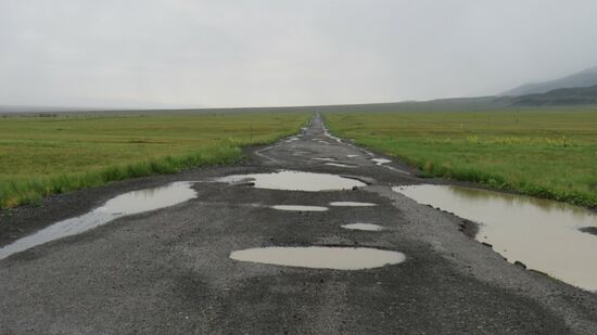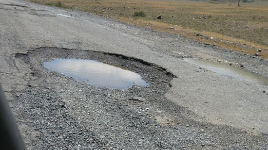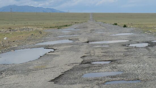 Drunten am Lake Alakol erwartet uns dann bereits die A7 mit riesigen, nach dem letzten Regenguss wassergefüllten Schlaglöchern.
