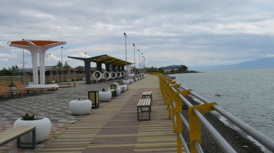 fahren bei Zharbulak noch mal schnell runter an den See, aber das Strandbad ist eben erst dabei aus dem Winterschlaf zu erwachen, entmottet zu werden,