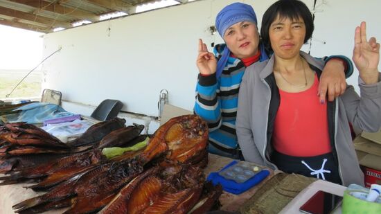 Am nächsten Morgen wollen wir uns an einem Verkaufsstand an der Strasse mit geräucherten Fischen eindecken, aber diese zwei netten Verkäuferinnen