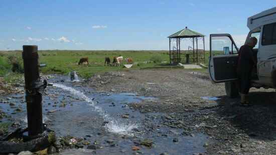 wo etwa 5km südlich der Stadt frisches, kaltes Wasser in einem armdicken Strahl aus dem Boden sprudelt, natürlich die Gelegenheit unsere Wasservorräte aufzufüllen bzw. auszutauschen.