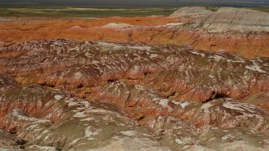 bevor wir den Lake Zaysan an seiner Ostseite umrunden, schnell und kompetent an einem Zollposten abgefertigt werden, der hier im weiteren Grenzgebiet zu China Wache schieben muss, dem als er meinen Vornamen sieht, sofort Mozart einfällt und das weitere Gespräch Richtung „Kleine Nachtmusik“ abgleiten lässt. Ja, sogar Kontrollen können manchmal echt Spass machen. Dann, Ufer-Fern der Nordseite des Sees entlang erreichen wir über 15km Off Road Piste die Kiin Kerish Cliff und sind überwältigt.
