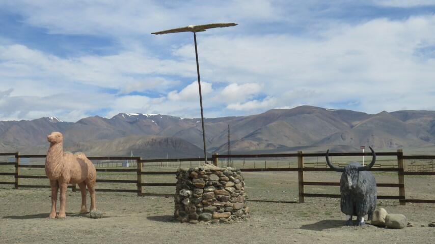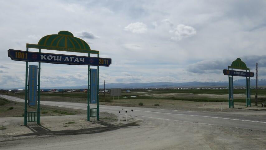 Am Ortseingang von Kosh-Agach das gewohnte Begrüßungskomitee