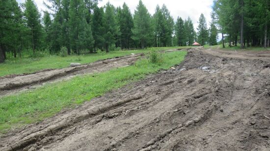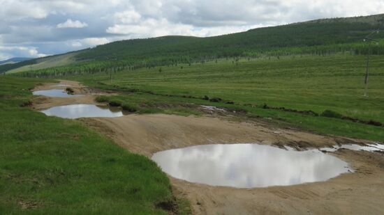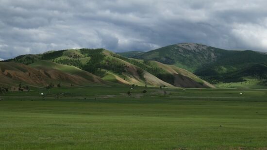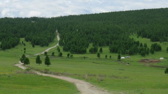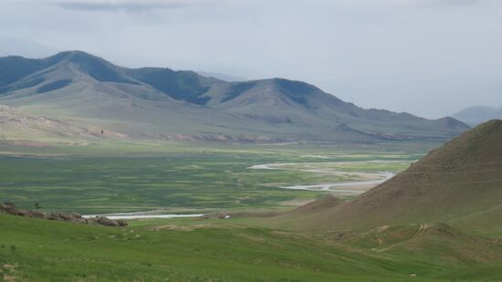 und schon ist die geteerte Hauptstrasse nach Mörön erreicht. In der Stadt selbst nur ein kurzer Aufenthalt zum Auffüllen der Geld- und Dieselvorräte, ein kurzer Besuch im Supermarkt und weiter geht es auf Wiesenpisten Richtung Süden. Auch hier schöne grüne Täler,