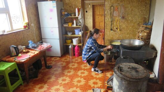 bis zur Chuluut Bridge, wo wir uns zur Mittagspause in einem der kleinen Restaurants dort niederlassen. Der Ofen wird schon angeheizt,