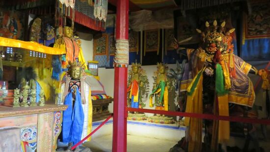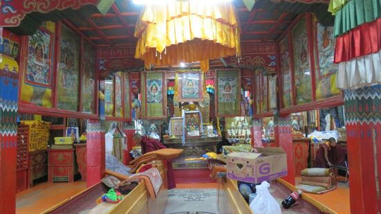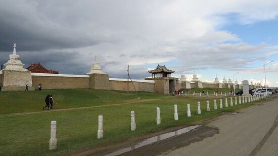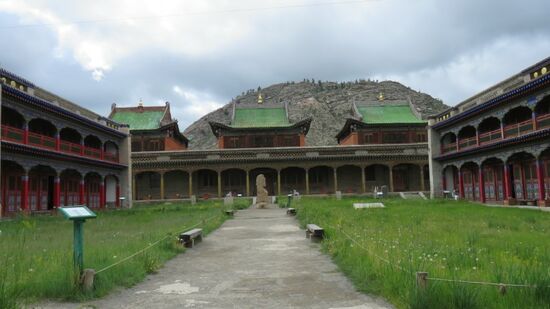 drinnen jedoch fast gähnende Leere, von den einstigen 60 – 100 Tempeln die den Bereich einst füllten blieben nur sehr wenige erhalten oder wurden wieder aufgebaut. Der heute aktivste Tempel ist der im Tibet Stil erbaute Lavrin Süm,