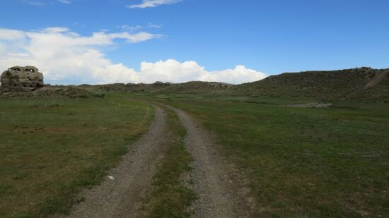 Kaum fährt man hier auf geteerter Strasse, kommen einem auch schon deutsche Urlauber entgegen, erst ein Unimog aus dem Süden Deutschlands, dann so ein 12t Expeditions-Lkw aus dem hohen Norden und am Schluss auch noch ein ROTEL-Bus. Wir bleiben dank unserer ausländischen Nummer unerkannt und biegen bei Khotont auf eine Piste Richtung Norden ab, besuchen kurz die Ruinen von Khar Balgas, die um 751 gegründete Hauptstadt des Reiches der Uiguren.