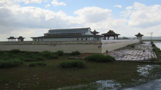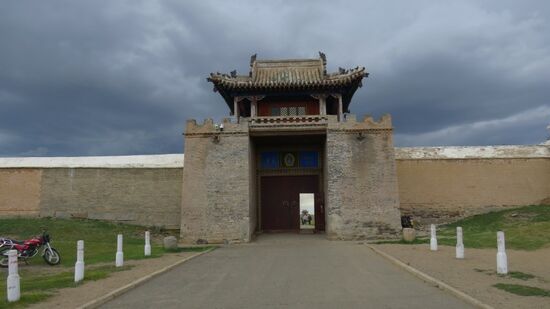 das im Innern eine Stele enthält die 732 errichtet wurde und an den turkischen Khan Kul-Teginii (684–731) erinnern soll, der einst hier regierte. Einen km weiter noch eine kleinere Version, die an den älteren Bruder Bilge Khagan (683–734) erinnert. 10 Jahre später wurde das Khanate von den Uiguren überrannt, die turkische Herrschaft hier damit zu Ende. Wir erreichen Kharkhorin, von Chinggis Khan und seinem Sohn Ögedei um 1250 gegründete Hauptstadt des Landes. Doch der Glanz währte nur 40 Jahre, dann verlegte Kubai Khan seine Hauptstadt ins heutige Peking und um 1388 wurde Kharkhorin von Manchurischen Soldaten dann völlig zerstört. Soviel Bauschutt bildete dann die ideale Grundlage hier Mitte des 16. Jh. Erdene Zuu Khiid, das erste Buddhistische Kloster der Mongolei zu erreichten, das dann unter Stalin fast völlig zerstört wurde. Die mächtigen Aussenmauern im Abstand von ca. 15m mit insgesamt 108 (eine heilige Zahl im Buddhismus) Stupas verziert