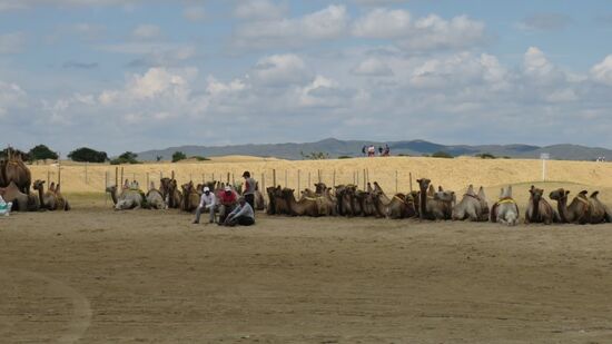 erreichen wir die ‚Mini Gobi‘, von Tourismusmanagern in Ulaanbaatar auch als Mongol Eis, die Mongolischen Dünen vermarktet. Ein etwa 70km langer Dünenstreifen, praktischerweise an der Hauptstrasse gelegen und entsprechend gross ist der Touri-Rummel.