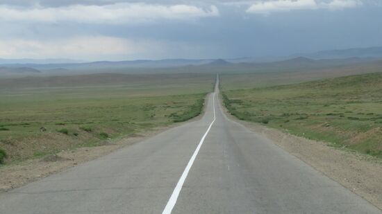 und dann auf meist guter, teils aber auch nur mäßiger (da sehr welliger) Teerstrasse Richtung Osten. Entlang der Chuluut Gorge