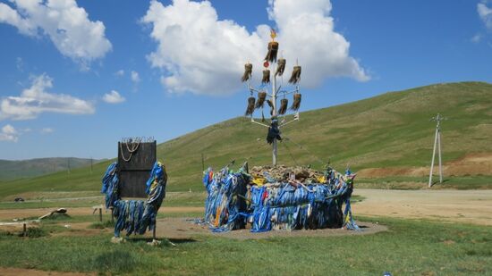 Entlang der Strasse nach Nalaikh dieser sehenswerte Ovoo am Wegesrand