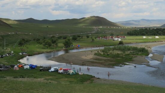 die offensichtlich zur Schlussfeier des Naadam hier unterwegs sind und ziehen uns dann auf einen SP in den Hügeln nahe des neuen Flughafens zurück.