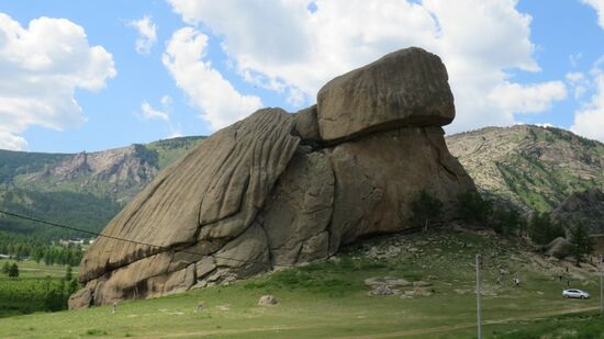 die ähnlich dem Rosetta Stone wesentlich zur Entzifferung einer alten Runenschrift beitrugen. Genug Kultur für heute, wir fahren weiter in den Gorkhi-Terelj NP, löhnen an der Schranke die obligatorischen MNT 3.000 /pP NP Bewunderungsgebühr, bevor wir uns darüber wundern, wie jemand der schon bei der Runterfahrt in einem Loch stecken bleibt,
