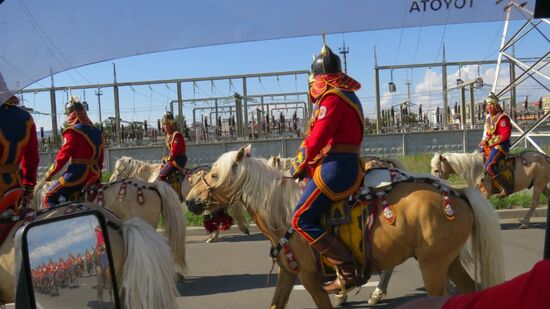sind von solchen ‚Urlaubsparadiesen‘ umlagert, schade dass selbst in einem NP hier der Kommerz die eigentlich schöne Natur besiegt. Wir fahren raus aus dem Park und weiter an den Stadtrand von Ulaanbaatar, stossen dabei auf diese Gruppe Reiter,