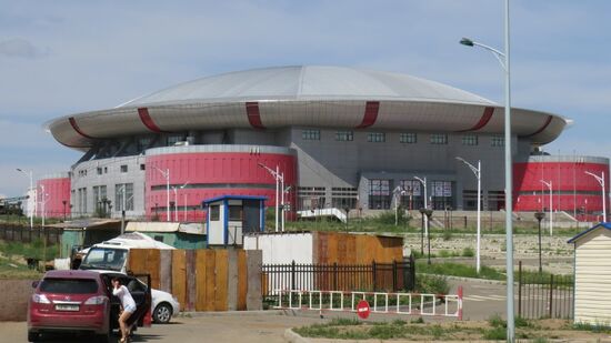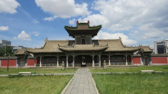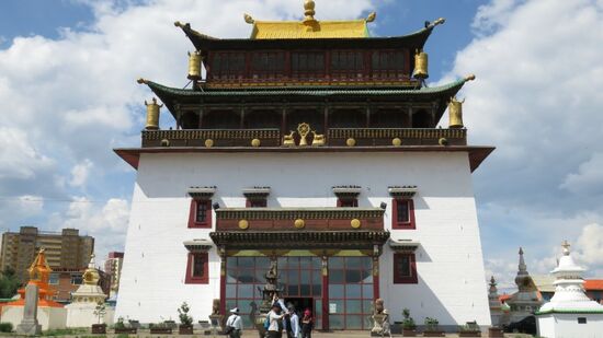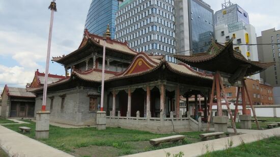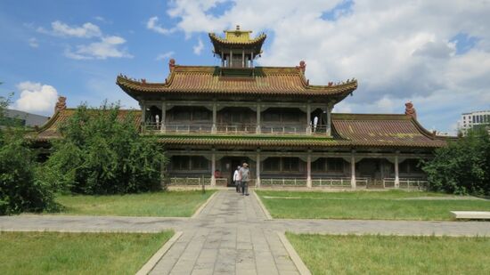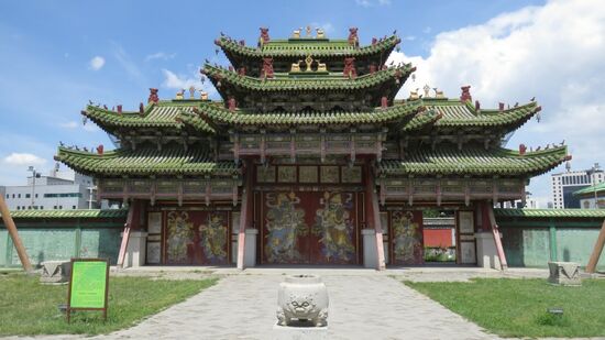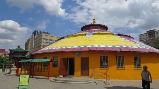 in denen einst der Zirkus untergebracht war. Im Hof wird derzeit an einem 6-Stockwerke hohen Gebäude gearbeitet, das eine 17m hohe Statue von Maidar beheimaten soll, dessen Dekoration, der weltgrößte Rosenkranz, mit 108 Kugeln, je 45,5kg schwer von japanischen Mönchen gestiftete, bereits in einem der Tempel bewundert werden kann.