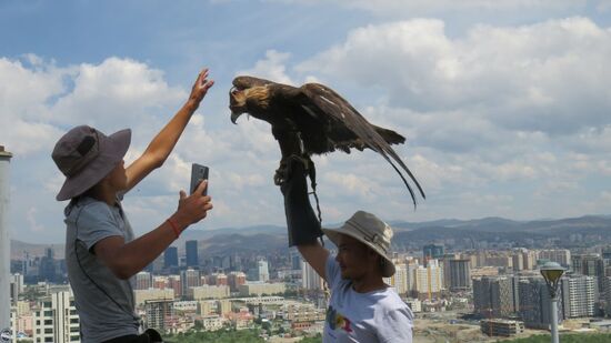 Drinnen dürfen die Einheimischen für MNT 10.000 das Museum besuchen und mit dem Aufzug in den Schwanz des Pferdes hochfahren, um von dort aus zu einer Aussichtsplattform auf dem Kopf des Pferdes hochzusteigen, von uns Ausländern wird da doch gleich mal der dreifache Preis von MNT 30.000 verlangt. Danke, wir gehen an den Show-Adlern vorbei