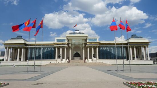 Wir fahren weiter zum Chinggis Khan Square, dem zentralen Platz von UB, dominiert von einem riesigen, an das Parlament lieblos angeklatschten Marmorgebäude,