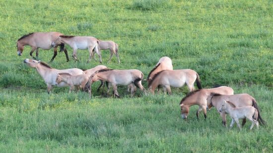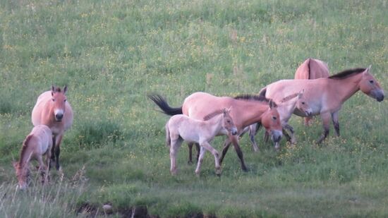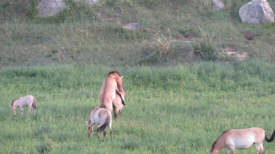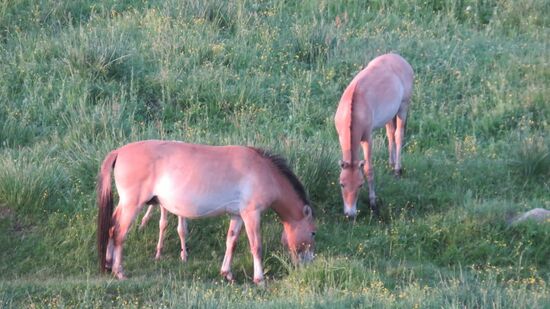 Mongolische Wildpferde, mit eigener DNA Struktur, die man in Freiheit als ausgestorben glaubte, nur in Zoos ausserhalb der Mongolei existierten noch etwa ein Duzend dieser Exemplare. Über ein spezielles Zuchtprogramm gelang es die Population auf über 1.500 anzuheben, bevor man mit der erfolgreichen Reintegration dieser Tiere in 3 Parks in der Mongolei begann. Hier im Khustain NP leben schon über 300 Pferde in freier Wildbahn, sorgen selbst für ihre Vermehrung