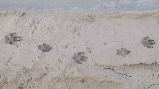 wundern uns über diese Spur im Schlamm am Wegesrand,