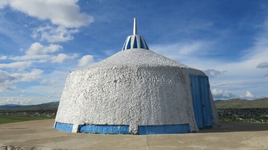 sind zurück in der Zivilisation, haben Teerstrasse und dieses an einen mongolischen Hut erinnernde Mausoleum.