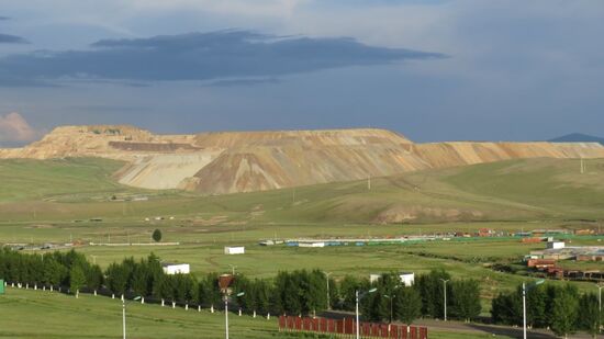 und die zweitgrößte Kupfermine der Mongolei, die im offenen Tagebau betrieben wird.