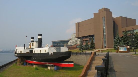 Am Ufer des Yenisey mitten in Krasnoyarsk liegt die SV Nikolai immer noch fest vertäut auf dem Trockenen,