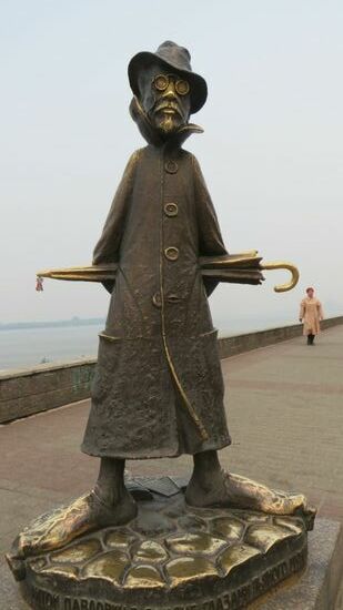 Chekhow bekam anlässlich der 400 Jahre Feier der Stadt auch sein Denkmal ab, drunten am Fluss, dem Tom River, in dem er im Rausch fast ertrunken sein soll.