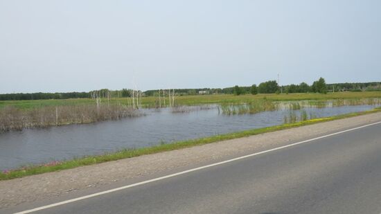 Autos, Holzhäuser, alles weggespült, zerstört und irgendwo wieder ausgespuckt, angelandet. Entlang der Strasse neben den landestypischen Birken- und Kiefernwäldern auch mal Felder mit blühendem Raps,